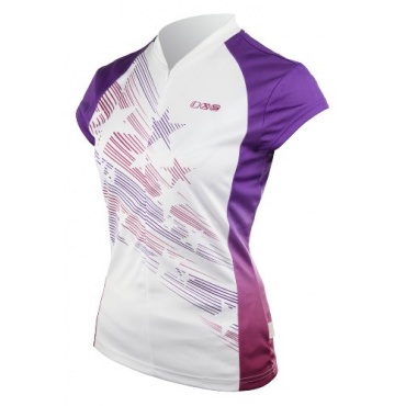 hat eine RV- und eine offene Rückentasche. Das Trikot an sich ist schnell trocknend und antibakteriell. Es ist optisch sehr schön in den Farben weiß und Lila gehalten. Das Trikot ist körpernah tailliert geschnitten.