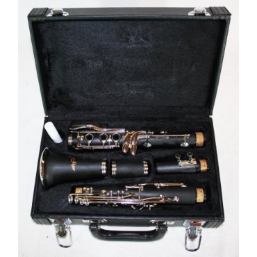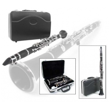 Mit der Bb Klarinette incl. Koffer und Zubehör.7401 bekommt man eine Klarinette zur Verfügung gestellt, die sowohl für den Anfängerbereich und später auch für fortgeschrittene Spieler eingesetzt werden kann. Die Klarinette verfügt über eine ausgezeichnete Klangqualität. Sie besteht aus 17 Klappen und 5 Teilen -Bb-Stimmung; Mundstück, Birne, Oberstück, Unterstück sowie Schallbecher - . Der Korpus der Klarinette ist hervorragend verarbeitet worden und wird geschützt durch ein robustes Hartschalenetui mit Koffer sowie Putztuch.