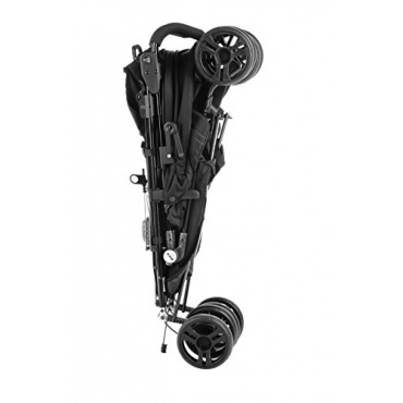 In dem mit einer in fünf verstellbaren Positionen verstellbaren Rückenlehne versehenen Buggy sitzt das Kind sehr bequem. Ein gepolsterter Bügel und ein verstellbarer 5-Punkt-Gurt sorgen für genügend Sicherheit. Der Griff kann in der Höhe 2-fach verstellt werden. Die Feststellbremse wird per Hand bedient, die Doppelräder können bei Bedarf arretiert werden.