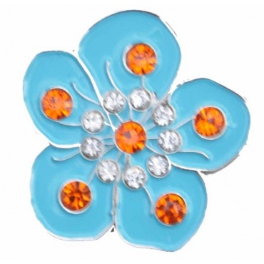 Golfen kann so schön sein. Mit dieser Blume als Golfballmarkierer. Denn damit kann Frau den Rasen noch schöner werden lassen. Das Blau, mit den zahlreichen Mustern, heben diese Blume vom Grün des Rasens deutlich ab. Schöner kann eine Stelle kaum noch markiert werden, als mit diesem Ballmarkierer in Blumenform.