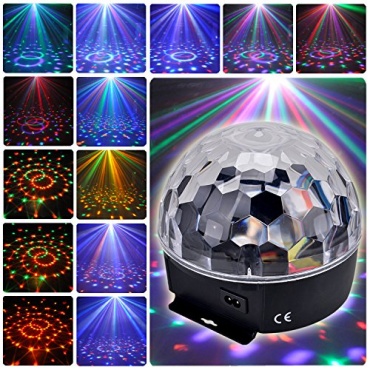 Diese magische Kugel sorgt für bunte Beleuchtung anhand LEDs. Dies hat den Vorteil, dass sich der Stromverbrauch niedrig hält und keine UV-Strahlen entstehen. Die Kugel ist ideal für jeden Party-Keller zuhause. Durch den günstigen Preis lohnt sich die Anschaffung auch für den seltenen Gebrauch. Das Licht sorgt für die optimale Partystimmung bei den Gästen.