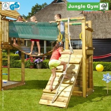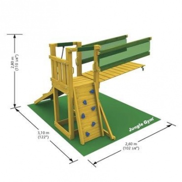 Diese innovative Art zu spielen stellt viele Anforderungen dar und so wird es nie langweilig auf diesem Klettergerüst entlang zu klettern und die Welt neu zu entdecken. Es ist das Jungle Gym Grundmodul das Ihnen hier zu einem wirklich interessanten Angebot gemacht wird und diese sichere und hochwertige Anlage kann ihren Garten schmücken und ihren Kindern viel Spaß bringen.Die brücke mit ihrem dynamischen Mittelpunkt ist das zentrale Element zwischen zwei Turmbauten. Balance, Konzentration und weitere Anforderungen werden gefördert und trainiert. Dieses Klettergerüst ist wertvoll und wirklich sinnvoll zum beschäftigen.