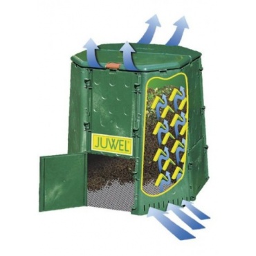 Der Juwel Komposter ist formschön und hochwertig verarbeitet und zudem robust und verspricht eine lange Lebensdauer. Das Aktiv-Belüftungssystem mit Wandlamellen ist aktiv gegen Gerüche.Der Komposter verfügt über Befüll- und Entnahmeklappen.Sehr guter Komposter in attraktivem Design für den großen Haushalt. Der Thermokomposter ist sehr stabil und zudem korrosionsbeständig wie auch wetterbeständig.
