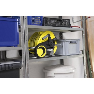 Das All-in-One Schlauchverwahrungssystem, mit einem 20 m langen ½" Primoflex®-Schlauch und einer hochwertigen Spritze. Die Schubgabel ist höhenverstellbar und der Rahmen einklappbar, so dass das Gerät besonders platzsparend verstaut werden kann. Der Metallsteg verleiht einen stabilen Stand. Der Schlauchwagen eignet sich zum Bewässern von kleinen und mittelgroßen Gärten.