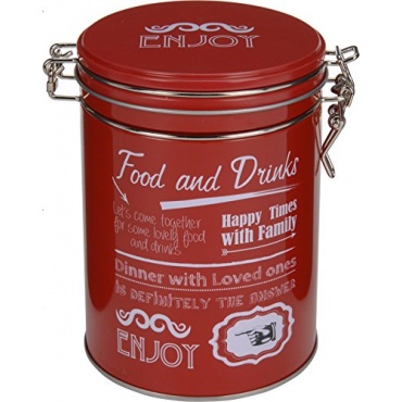 - sehr einfach mit Wasser zu reinigen (man braucht keine Spülmittel), sehr ansprechendes Design im Retro-Look, Bügelverschluss für eine gute Abdichtung, zusätzlich noch Gummidichtung am Deckel als Luftabdichtung, sehr robust aus pulverbeschichtetem Stahlblech gefertigt, stoßfest