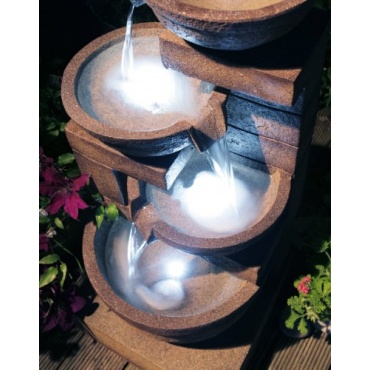 Der attraktive drei-stufige Brunnen von Kendal verfügt über ein modernes Design und ist sowohl im Garten als auch in geschlossenen Räumen wie im Wintergarten eine Augenweide. Der Brunnen besitzt eine integrierte Halogenbeleuchtung, die das fließende Wasser anstrahlt und auf diese Weise für eine ganz besondere Atmosphäre sorgt. Der Brunnen vermittelt Ruhe und Entspannung und gehört zu den dekorativen Elementen, die den Garten in ein kleines Paradies verwandeln, in dem man sich wohl fühlt.