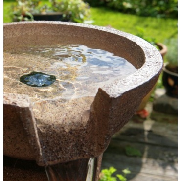 Der Brunnen verfügt über einen geschlossenen Wasserkreislauf und ein gesondertes Wasserreservoir ist nicht nötig. Aus hochwertigem Kunstharz hergestellt, ist dieser Artikel UV-resistent und frosthart. Somit kann der Brunnen das ganze Jahr über im Garten verbleiben ohne dabei Schaden zu nehmen. Die Beleuchtung, die den Effekt des fließenden Wassers unterstreicht, macht den Brunnen auch nachts zu einem Mittelpunkt im Garten und zum Mittelpunkt einer Gartenparty.
