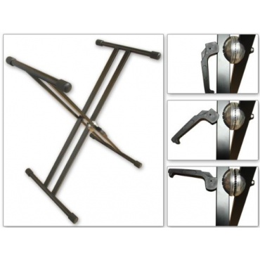 Der Keyboardständer verfügt über 4 Gummistopper und sorgt somit für einen sicheren Stand. Er lässt sich einfach und leicht zusammenlegen und ist somit auch sehr platzsparend. Geeignet für handelsübliche Keyboards ist der Ständer somit ein absolutes Muss für alle Musikfans. Ein Klemmverschluss welcher aus Metall und natürlich verzahnt ist, sind die weiteren Highlights.