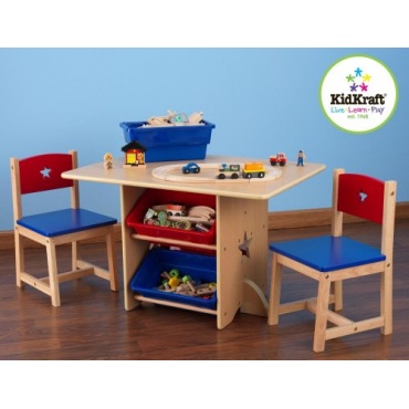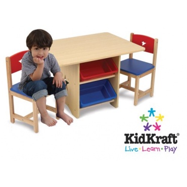 Diese Kindersitzgruppe von KidKraft ist optisch auf ganzer Linie gelungen. Denn dadurch, dass bei dieser Kindersitzgruppe rot, blau und naturfarbenes Holz miteinander kombiniert werden, ist diese Kindersitzgruppe auch für Mädchen und Jungen geeignet. Zudem ist diese Kindersitzgruppe mit einem ganz besonders praktischen Tisch ausgestattet, der sogar Ablagefächer unter sich hat.