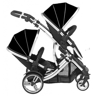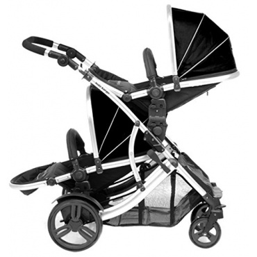 Kidz Kargo Zwillingskinderwagen schwarz ist optisch ein Hingucker. Er ist kräftig und widerstandsfähig. Seine Federung und der im Set enthaltene Regenschutz bieten jederzeit optimalen Komfort. Für den Komfort der Eltern sorgt der weiche und höhenverstellbare Schieber von 98 bis 104 cm Länge. Mit dem Kind die Natur und die Welt entdecken macht mit am Buggy einfach Spaß. Das gefederte leiche Aluminiumchassis des Zwillingskinderwagens ist ideale für Eltern, Großeltern und Tagesmütter.
