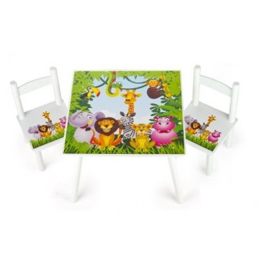Mit dieser Kindersitzgruppe kann man seinem Kind ein ganz eigenes Reich zum Sitzen, Malen, Basteln und Spielen schaffen. Denn diese Kindersitzgruppe ist speziell auf die Bedürfnisse von kleinen Kindern ab einem Alter von zwei Jahren ausgerichtet. So haben die beiden Stühle und der Tisch ein tolles buntes Design in einer kindgerechten Dschungel-Optik mit Tieren.