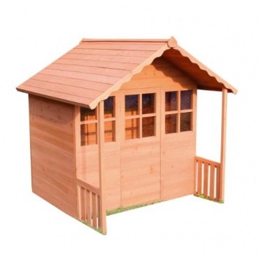 Das Kinderspielhaus von Pro-Manufactur ist komplett aus Holz gefertigt. Die Farbe ist naturbelassen. Die Gesamtmaße des Hauses inklusive Veranda betragen ca. 140x140x148 cm (LxBxH). So bietet das Haus genügend Platz zum Spielen und Toben. Die Veranda ist zwar ohne Fußboden, aber mit einem beiderseitigen kleinen Geländer versehen.