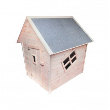- Das Kinderspielhaus hat Fenster und Tür