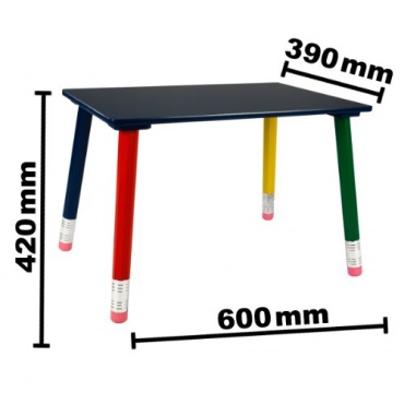 Die Kindertischgruppe der Profi-Gruppe besteht aus einem Tisch und zwei Stühlen. Sie erfreut mit ihren bunten Farben jedes Kinderherz und durch den günstigen Preis ebenfalls das der Erwachsenen. Durch ihr außergewöhnliches Design mit Füßen und Stuhlstützen in Form von Buntstiften peppt es jedes Kinderzimmer auf. Damit macht das Malen darauf und das Spielen noch mehr Spaß.