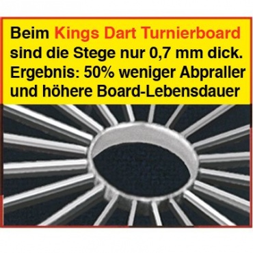 - Die Kings Dart Turnierboard Dartscheibe Spider ist eine echte Turnierscheibe. Auch wenn hierbei keine elektronische Zählweise verwendet wird, ist sie für den Privatgebrauch nicht geeignet. Außerdem wird nicht jedem die Aufschrift Kings Dart gefallen.
