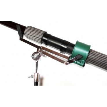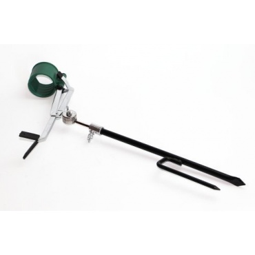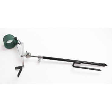- Dieser Rutenhalter ist mit zwei Stahlspitzen ausgestattet.