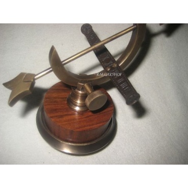 Kleine Sonnenuhr auf Holzsockel aus Messing