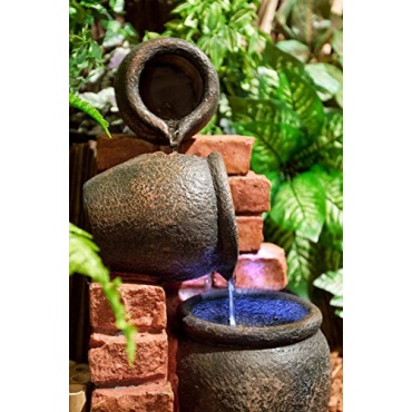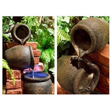 Der "Kleiner Ölfass-Brunnen" verwandelt den Garten, bzw. die Terrasse in eine Wohlfühloase, dank des beruhigenden Wasser-Geplätschers. Das ansprechende Design aus kleinen antiken Ölfässern und den Ziegelsteinen wirkt dekorativ im Außenbereich. Der Wasserkreislauf des Brunnens ist geschlossen, damit ist der Brunnen auch wassersparend. Dank der Pumpe wird das Wasser vom untersten Fass nach oben hin gepumpt.