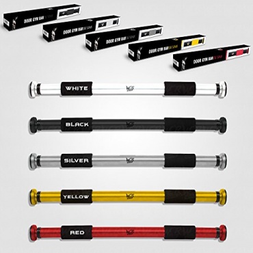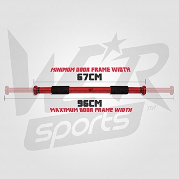 Die Klimmzugstange von We R Sports hat den Fokus ganz klar auf Belastbarkeit. Entsprechend kommt sie auch mit speziellem Zubehör zur Befestigung im Türrahmen. Dadurch ermöglicht sie dann auch Personen bis zu einem Körpergewicht von 136 Kilogramm das Training. Die Klimmzugstange kommt in silberfarbenem Design und ist für eine Türbreite von 67 Zentimetern bis hin zu 96 Zentimetern nutzbar. Für das Training stehen bequeme Schaumstoffgriffe für die Hände zur Verfügung.