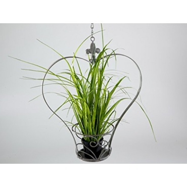 Die romantische Herzform der filigran gearbeiteten Blumenampel wird unterstrichen durch die Antik-Optik des Materials, was dem Produkt einen leicht nostalgischen Flair verleiht. Die gesamte Blumenampel ist in aufwändiger Handarbeit gefertigt und stellt einen auffallenden, doch farblich eher dezenten Blickfang auf Terrasse, Balkon, im Wintergarten oder Wohnbereich dar. Da der für den Blumentopf vorgesehene Teil nicht verkleidet ist, kommt ein hübscher Übertopf hier gut zur Geltung, was durch das herzförmige Gitter noch verstärkt wird.