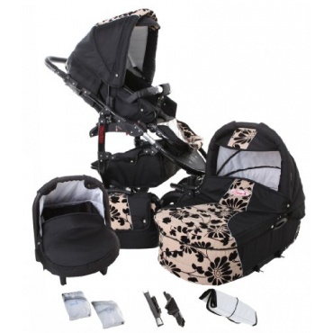 Krasnal Kombikinderwagen Komplettset Schwarz Beige