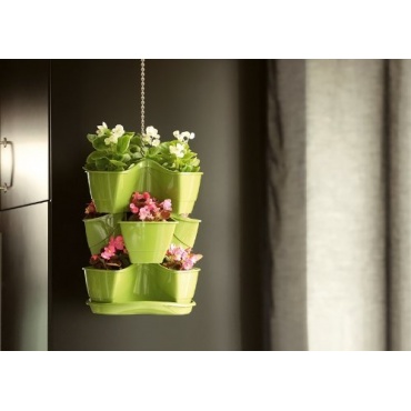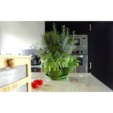 Die Planzpyramide ist mit drei Stockwerken ausgestattet, wobei jedes von diesen wiederum mit je drei Gefäßen zum Einpflanzen versehen ist. Insgesamt bietet die Pyramide also neun verschiedene Pflanzgefäße zum Einpflanzen von verschiedenen Pflanzen. Die Pyramide ist in den Farben weiß, anthrazit, beige und grün erhältlich.
