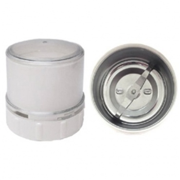 Diese Krups XF608101 Kaffeemühle ist ein Modell aus den 60 - 70 iger Jahren. Sie fällt durch ihre schlichte Form auf. Das zylindrische Gehäuse ist aus cremig lackiertem Leichtmetall und nimmt Motorblock und Mahlbehälter auf. Das Zwei - Klingen - Schlagmesser läuft in einem Edelstahlbehälter und wird beim Mahlvorgang mit einem Plastdeckel verschlossen.