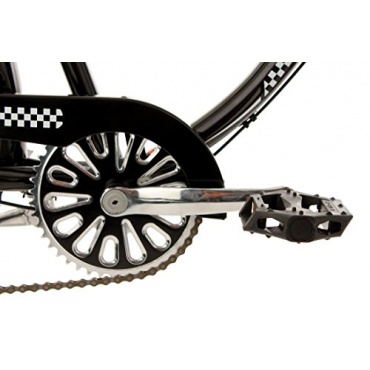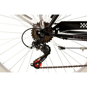 Mit dem sportlichen Cruizer der Marke KS kann man entspannt meilenweit fahrradfahren. Der formschöne Lenker und der stylische Rahmen erinnern dabei eher an ein legendäres Motorrad. Das edle Design des Beachcruisers ist zeitgemäß, obwohl bei der Farbgestaltung des Fahrrads eine Hommage an die Retrofahrräder darstellt. Hierbei fallen vor allem der glänzende, schwarze Rahmen und der braune SELLE MONTE GRAPPA-Sattel, der gefedert ist sowie die teilweise hellen Reifen auf.
