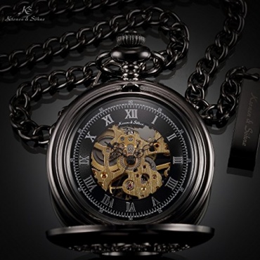 Die KS Mechanisch Damen Taschenuhr wurde im antiken Stil designt. Sie ist ein Modell der erfolgreichen Halbsavonnette-Serie des Herstellers. Das mechanische Präzisions-Räderwerk mit 17 Juwelen zeigt die Uhrzeit präzise an. Die Anzeige der Uhrzeit erfolgt auf einem skelettierten, schwarzen Zifferblatt, auf welchen römische Zahlen angeordnet sind. Im durchgeführten Test punktete das Modell durch ein außergewöhnliches Design und eine hochwertige Verarbeitung.