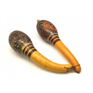 Die aus Kürbis gefertigte Maracas Percussion werden im 2-er-Set geliefert. Die für den Rhythmus produzierte Musikinstrumente werden in Peru aufwendig in Handarbeit hergestellt. Die Perkussionsinstrumente können ohne Vor- und Notenkenntnisse gespielt werden. Die Rasseln sind zur Verbesserung des Rhythmus- und des Klanggefühls sowie zum Feinmotorik-Training einsetzbar. Die Maracas besitzen nur ein geringes Eigengewicht und können optimal von kleineren Kindern gespielt werden. Bei jeder Rassel handelt es sich um ein Unikat.