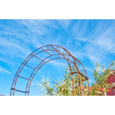 Der urige Rosenbogen aus Roheisen gibt den Pflanzen einen perfekten Halt und ist in jedem Garten ein schöner Blickfang.