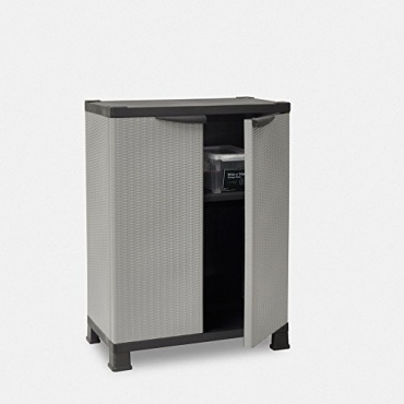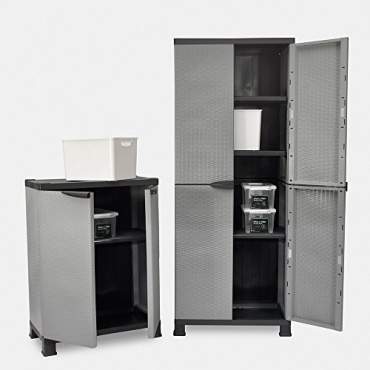 Schränke können nie genug vorhanden sein, um ausreichend Staumöglichkeit zu schaffen. Dieser praktische Gartenschrank Madera von RAM in Leichtbauweise verfügt über einen verstellbaren Einlegeboden mit einer Tragkraft von 20kg. Er bietet an den Griffen zweckmäßige Vorrichtungen, um die Türen mit einem Vorhängeschloss abzuschließen. Der Rattan-Schrank ist in gediegenem Grau zu bekommen und wird auf vier Füßen aufgestellt. Die einfache Montage ist mit der beiliegenden Anleitung schnell durchgeführt.