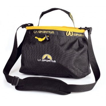 Die schwarz/gelbe Tasche, besser gesagt der Boulder Bag des Herstellers La Sportiva ist der ideale Begleiter beim Bouldern. Dank der Universalgröße kann man in diesem Bag nahezu alles mitnehmen was man braucht. Die Tasche lässt sich praktisch verschließen sowie öffnen und ist während der Tour ein nahezu unsichtbarer Begleiter.