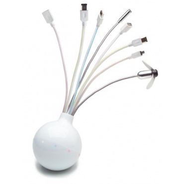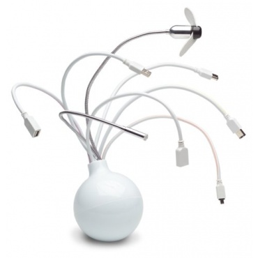 Der LaCie 130753EK USB Firewire Hub ist nicht nur technisch ein interessantes Hilfsmittel um Verbindungen zu überbrücken, sondern auch optisch im Design ein sehr innovatives Konzept. Flexible Kabel auf einer Kugel, die den technischen Teil beinhaltet, dass ist die Botschaft und ein sehr interessanter HUB mit einem zusätzlichen Ventilator. Zwei Fire Wire Verbindungen m,it 400 Kabel und 4 USB 2.0 Kabel sind angebracht um neue Verknüfungen zu anderen Endgeräten zu schließen. Zusätzlich bietet eine LED Lampe spendendes Licht.