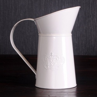 Diese Zinkkanne ist sehr dekorativ und man kann sie sowohl auf die Fensterbank stellen, wie auch auf einen Schrank. Allerdings ist immer darauf zu achten, dass kein Wasserrand unter der Kanne ist. Denn dies könnte unter Umständen für die Möbel bzw. die Fensterbank nicht zuträglich sein. Weiß ist eine Farbe, die als Deko sehr gut zu vielen Landhausstilen passt. Vor allem bei dunkleren Möbeln kommt die weiße Zinkkanne sehr gut zur Wirkung.
