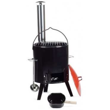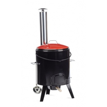 Dieser Eintopfofen 0825 von Landmann in ansprechender Optik verfügt über ein großes Volumen von bis zu 14 Litern. Der Kochtopf aus emailliertem Metall ist herausnehmbar und mit Deckel. Zur Befeuerung sind Holz, Briketts oder Holzkohle verwendbar. Der Aschekasten im unteren Bereich ist herausziehbar und leicht zu leeren. Das Ofenrohr des Ofens ist aus Edelstahl, ebenso wie die im Lieferumfang enthaltene passende Schöpfkelle. Dieser Eintopfofen ist ein Highlight auf jedem Fest, Party oder Weihnachtsfeier.