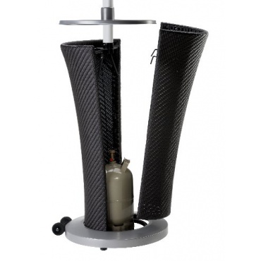 Der Heizstrahler von Landmann wird mit handelsüblichen Gasflaschen betrieben und ist in Edelstahl verarbeitet. Der Unterbau ist aus einem Geflecht gebildet. Optisch ist das Gerät zum Heizen sehr ansprechend und ein absoluter Blickfang.