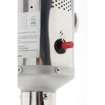 Neigunswinkel kommt die sichere Abschaltautomatik zum Einsatz. Die Zufuhr vom Gas ist stufenlos einstellbar. Dank der zwei fahrbaren Rollen ist der Strahler zum Heizen transportierbar und mobil. Das Edelstahl Design ist ein Eyecatcher. Der Strahler ist für den Einsatz im Freien perfekt geeignet und überall verwendbar.