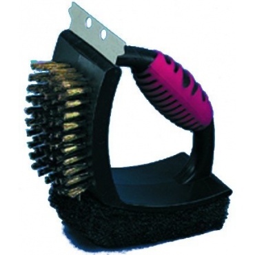 Die Landmann Grill - Reinigungsbürste ist ein wahres Multitalent. Die Bürste hat einen Kunststoffgriff, der geriffelt ist und somit sehr angenehm in der Hand liegt. Auf einer Seite befindet sich ein Kunststoffschwamm, der wunderbar für das Auftragen des Grillreinigers genutzt werden kann. An der nächsten Seite befindet sich eine Bürste aus Messingborste diese eignet sich wunderbar zum Entfernen von hartnäckigen Verkrustungen. Des Weiteren gibt es noch einen Edelstahl Schaber mit dem Schmutz und Fettreste einfach wegegekratzt werden können.