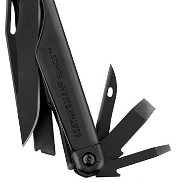 Im Leatherman Surge Camping Multifunktionswerkzeug vereinen sich jede Menge Werkzeuge, um einem das Leben unterwegs leichter zu machen, ohne großen Balast mitschleppen zu müssen. Das Messer sieht hochmodern aus und die Messer und Werkzeuge werden aus rostfreiem Stahl gergestellt. An dem Mutifunktiontoll befinden sich zwei unterschiedliche Messer. Eines davon hat einen glatten Schliff, das andere verfügt über einen Wellenschliff.