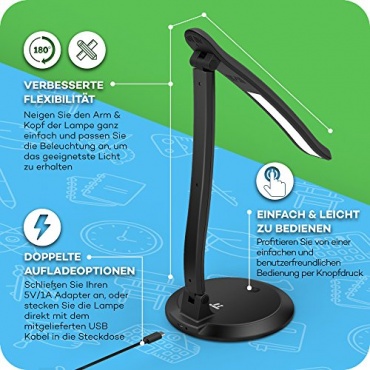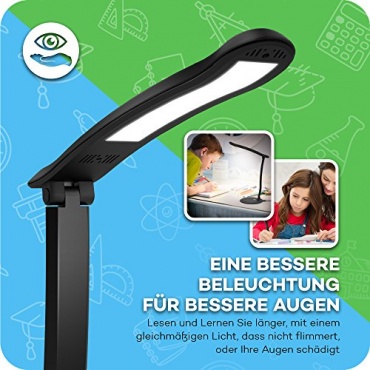 Eine Schreibtischlampe sollte leicht bedienbar sein. Aus diesem Grud wurde diese Schreibtischlampe LED TaoTronics mit einer Einhandbedienung ausgestattet. Die Lampe ist dimmbar und blendfrei. Also genau das richtige für alle, welche sich mit anspruchsvoller Tätigkeit am Schreibtisch beschäftigen möchten. Die Energieeffizienzklasse A ist ein weiteres Plus, welches dafür sorgt, dass die Lampe dauerhaft günstig im Verbrauch ist und umweltschonend.