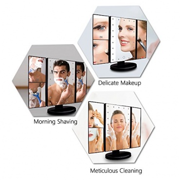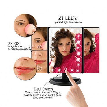 Der Leeron 21-LED beleuchteter Schminkspiegel ist genau das Richtige für alle Frauen, die wirklich perfekt geschminkt sein wollen. Das Produkt besteht aus einer großen Spiegelfläche und zwei kleineren, die seitlich angebracht sind. Dadurch lässt sich der Spiegel zusammenklappen und ist auch als Reisespiegel ausgezeichnet geeignet. Design, Ausstattung und Funktionalität sind anspruchsvoll, was sich auch im Preis ausdrückt, der den einfacher Spiegel deutlich übersteigt.