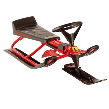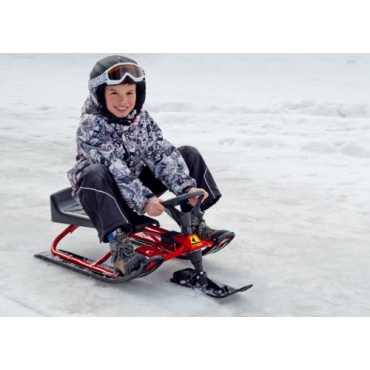 Der Lenkschlitten Snow Bob KIDDY-STAR wurde speziell für Kinder ab 6 Jahren konzipiert. Visuell zeigt sich der rot-schwarze Schlitten als sportives und feuriges Sportgerät. Dementsprechende Voraussetzungen erfüllt dieser Rennschlitten in puncto Fahreigenschaften. Rasante Fahrten sind mit diesem Kinderschlitten problemlos möglich. Gleichzeitig gewährleistet die direkte Lenkung ein gut kontrolliertes Lenken. Die etwas breiteren Kufen bieten auch im Tiefschnee eine gute Performance.