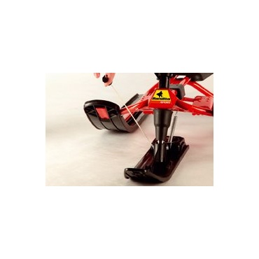 Viel Stabilität verleiht diesem Schlitten der Metallrahmen. Kufen und Sitzbank wurden aus solidem Kunststoff gefertigt. Kippgefahr ist keine gegeben. Zusätzlich wurde an der Lenkerkufe eine Federung verbaut. Schläge und Stöße werden dadurch aufgenommen und ein verbesserter Bodenkontakt hergestellt. Die Sitzfläche bietet genügend Platz für zwei Kinder im Alter zwischen 10 und 12 Jahren bis maximal 75 Kilogramm. Die Antiblockier-Bremse zur sicheren Verzögerung des Schlittens kann von beiden Seiten betätigt werden.