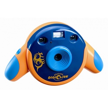 Die Lexibook Digiclick Kinderkamera orange blau zeigt die Optik eines Kinderspielzeuges und die Technik eines Hightech Produktes. Die beiden flügelähnlichen Griffe an den Seiten ermöglichen ein bequemes Handling. Ein optischer Sucher sichert die Erfassung des Objektes und die große Auslösertaste macht das Fotografieren für Kinder leicht. Eltern wissen längst, dass Kinder einen unbeschreiblichen Spaß am Fotografieren, besonders an selbst gemachten Fotos haben. Das eingebaute Blitzlicht und die Auflösung von 1,3 Megapixeln ermöglichen scharfe Schnappschüsse beim Spielen.