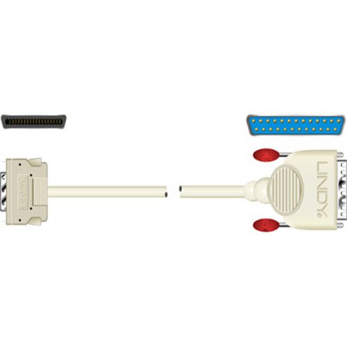| Anschlüsse | 25 poliger Sub D Stecker an 36 poligem Mini bzw. Half Pitch Centronics Stecker | |