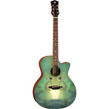 Möchte man eine Gitarre mit einer sehr ausgefallenen und gleichzeitig schönen Optik besitzen, so sollte die Wahl auf die Luna Guitars GYP SOTN Akustikgitarre fallen. Das mystische Motiv, das sich auf der Vorderseite befindet, entführt jeden Spieler und Zuhörer in ein Land der Träume. Mystische Klänge hören sich bei dieser Gitarre ganz besonders schön an. Die Töne sind klar und rein und laden zum zuhören ein.