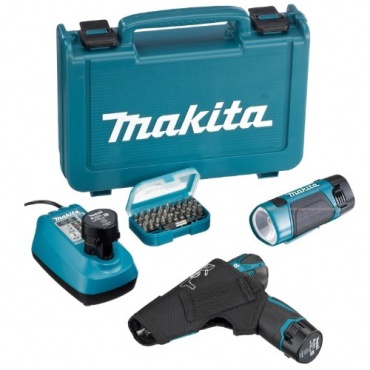 Die Drehmomenteinstellung ist 18-fach verstellbar. Außerdem verfügt der MAKITA Akku Schrauber 10.8V DF330DWLEX über eine zusätzliche Bohrstufe. Die Bohrleistung in Stahl beträgt hier 10 mm, in Holz sogar 21 mm. Der kraftvolle Akku kann praktisch über das mitgelieferte Ladegerät aufgeladen werden und hat eine Akkukapazität von 1,3 Ah. Die integrierte Motorbremse sorgt für zusätzliche Präzision und Sicherheit bei Arbeiten in Haus oder Garten. Im Preis inbegriffen sind bei diesem Produkt das Ladegerät, eine praktische Holstertasche und eine hochwertige, 31-teilige Bitbox von Nordec.