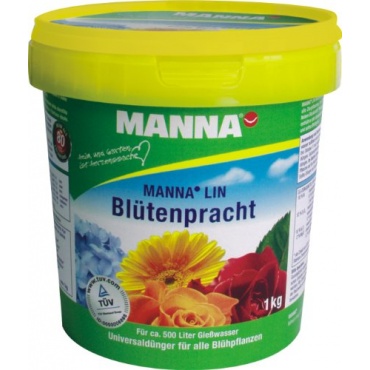 Der Mannalin Blütenpracht 1 kg, Blumendünger ist ein mineralischer NPK-Dünger der alle blühenden Pflanzen mit den notwendigen Spurennährstoffen versorgt. Er ist mit dem TÜV-Siegel ausgezeichnet und hat sich vielfach in Heim- und Garten, aber auch in Beeten und Anlagen bewährt. Der Dünger ist einfach in der Anwendung - es genügt die Mischung mit dem Gießwasser zu mischen oder auf den Boden zu streuen, um eine langanhaltende Blüte der Pflanzen zu erreichen.