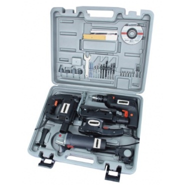Das Mannesmann Elektrogeräte Set ist vierteilig und beinhaltet im Lieferumfang eine Schlagbohrmaschine, eine Pendelhubstichsäge, einen Elektro- Winkelschleifer und einen Einhand-Winkelschleifer zudem befinden sich noch verschiedene Bohrer sowie Maulschlüssel und anderes Werkzeug in diesem Set. Damit hat man alles was für die gängigsten Handwerker arbeiten benötigt wird. Alle Elektrogeräte sind von guter Qualität leisten hervorragende Arbeit und sind zudem sehr robust. Wie die einzelnen Gerät bedient werden, ist ausführlich in der Gebrauchsanweisung nachzulesen.